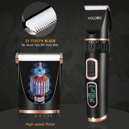 HOLDOG Dog Clippers are designed with a three-speed rotary motor that gives you the power and speed that professionals demand without producing additional heat or noise. Plus, their 2200mAh high-capacity Li-ion battery ensures that you have plenty of power to groom your pet.
