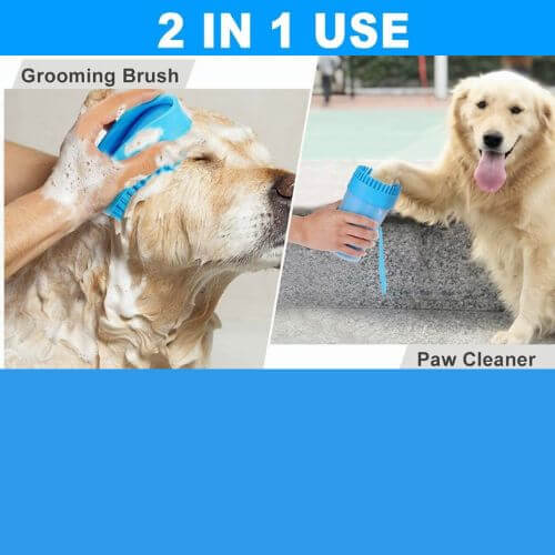 Not only can you use it to clean your dog's paws, but the brush doubles as a grooming brush! With soft silicone bristle, it is perfect for shampooing your pet, or just brushing them down.