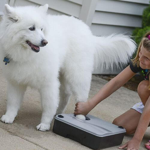 This patented paw cleaner made in the USA is like a sink that you can set by your door for use whenever you need it. And it has been proven to remove 99.5% of bacteria and 99.9% of fungi when used with antibacterial soap.