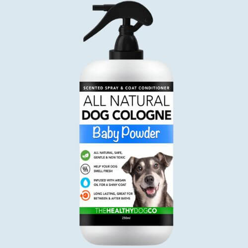 While you may think that baby cologne is less harmful than adult perfume for your dog, it is still not a good idea. Instead, choose a natural pet cologne that's made for dogs - there are many good products available. And they are just as cost-effective as baby cologne. If your dog is particularly stinky, and you don't have any dog deodorizer or dog perfume handy, a good old-fashioned bath should do the trick!
