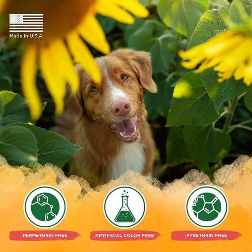 Made with essential oils of clove, lemongrass, cedarwood, and cinnamon provide an all-natural alternative to chemical repellants so it’s not only safe to use on your pup but it won’t harm the rest of the family. Natural lemongrass oil gives a long-lasting citrus aroma that will keep your dog smelling sweet while also effectively repelling pesky critters.