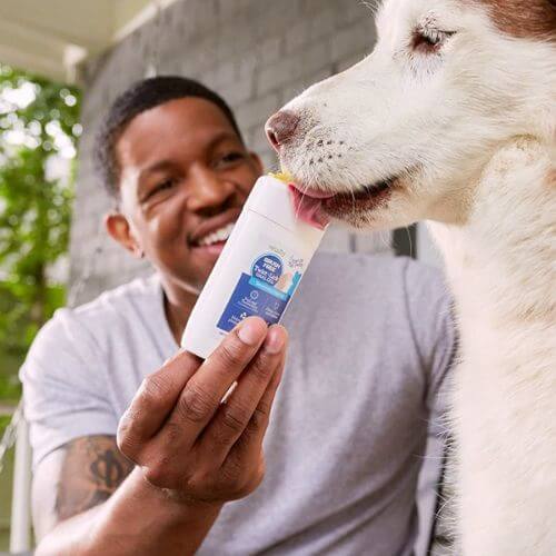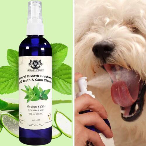 According to veterinarians, this breath freshener, created with 100% natural ingredients such as aloe, mint, and baking soda can help you bypass the sensitivity-inducing chemicals, preservatives and sugar commonly used in other oral care products.