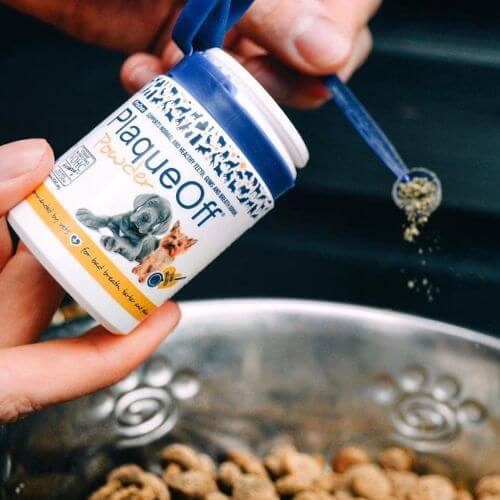 ProDen PlaqueOff is made using only 100% natural organic kelp sustainably harvested off the coast of Scandinavia. This active ingredient works to dissolve existing tartar and prevents new build-up of dental plaque and tartar - giving your pup fresh breath almost instantly!