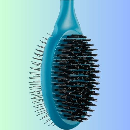 Use it on both wet or dry hair - easy peasy! And when done you can just easily lift off the excess hair from the brush and rinse - then air dry. Plus, its ergonomic design helps reduce wrist strain during brushing.