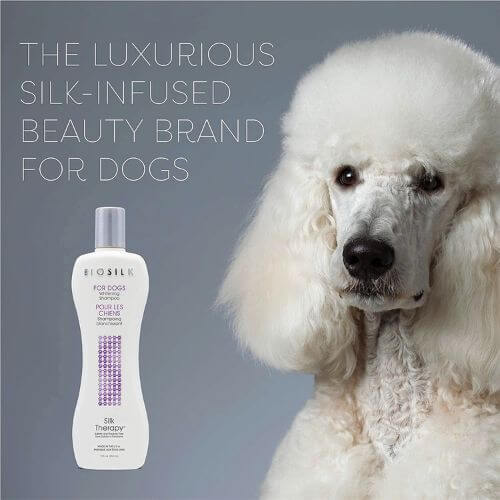 BioSilk for Dogs Silk Therapy Whitening Dog Shampoo is specifically formulated for white dogs, and is free of parabens and sulfates. It is also pH balanced for dogs, and suitable for all dogs and puppies 8 weeks of age and older.