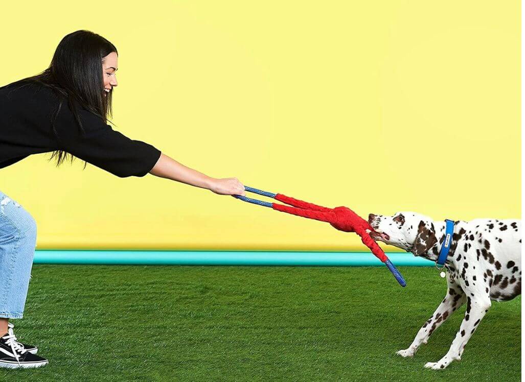 Tug toys are a great way to interact with your dog, and strengthen the bond between you. Even when your dog can't see you (or their toy) too well, they will still enjoy a game of tug! Tug toys come in various forms, and are usually made of rope (for added texture) or rubber. So enjoy some quality time with a tug toy.